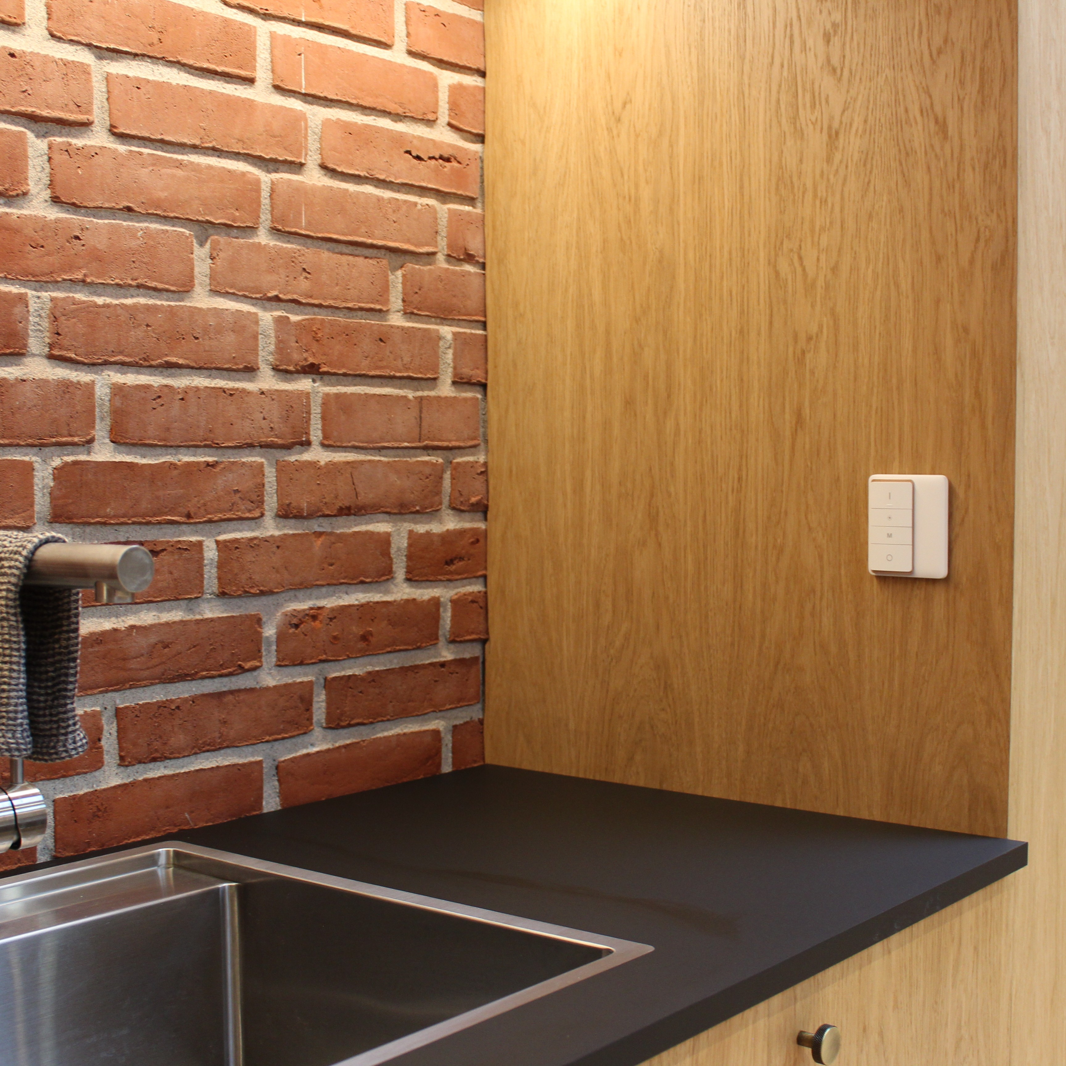 Die CUE-Fernbedienung ist flexibel und einfach zu installieren. Dank der selbstklebenden Rückseite lässt sich die Halterung einfach an der Wand oder an einer Schranktür anbringen. Die Fernbedienung selbst ist magnetisch befestigt und lässt sich daher leicht abnehmen und verschieben.