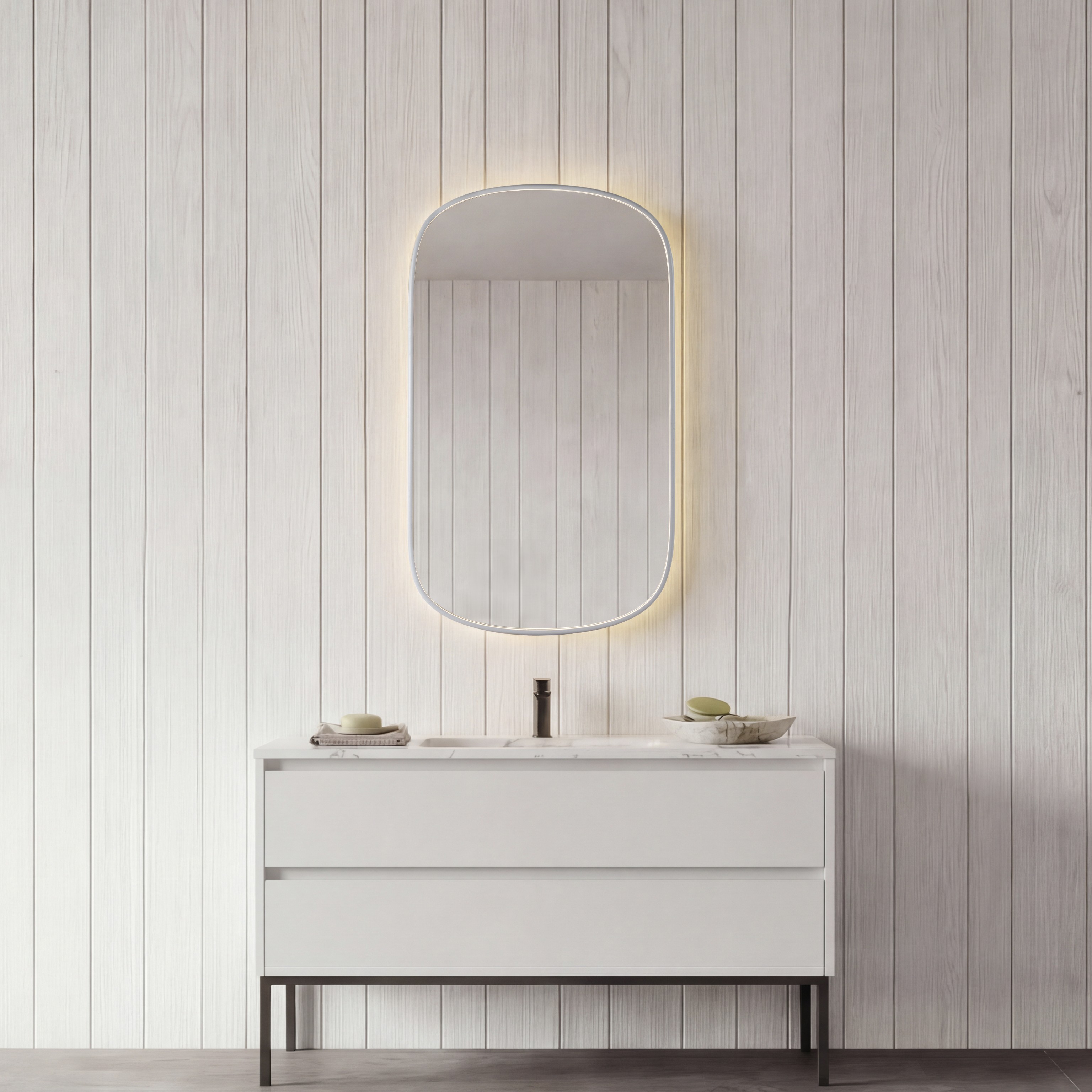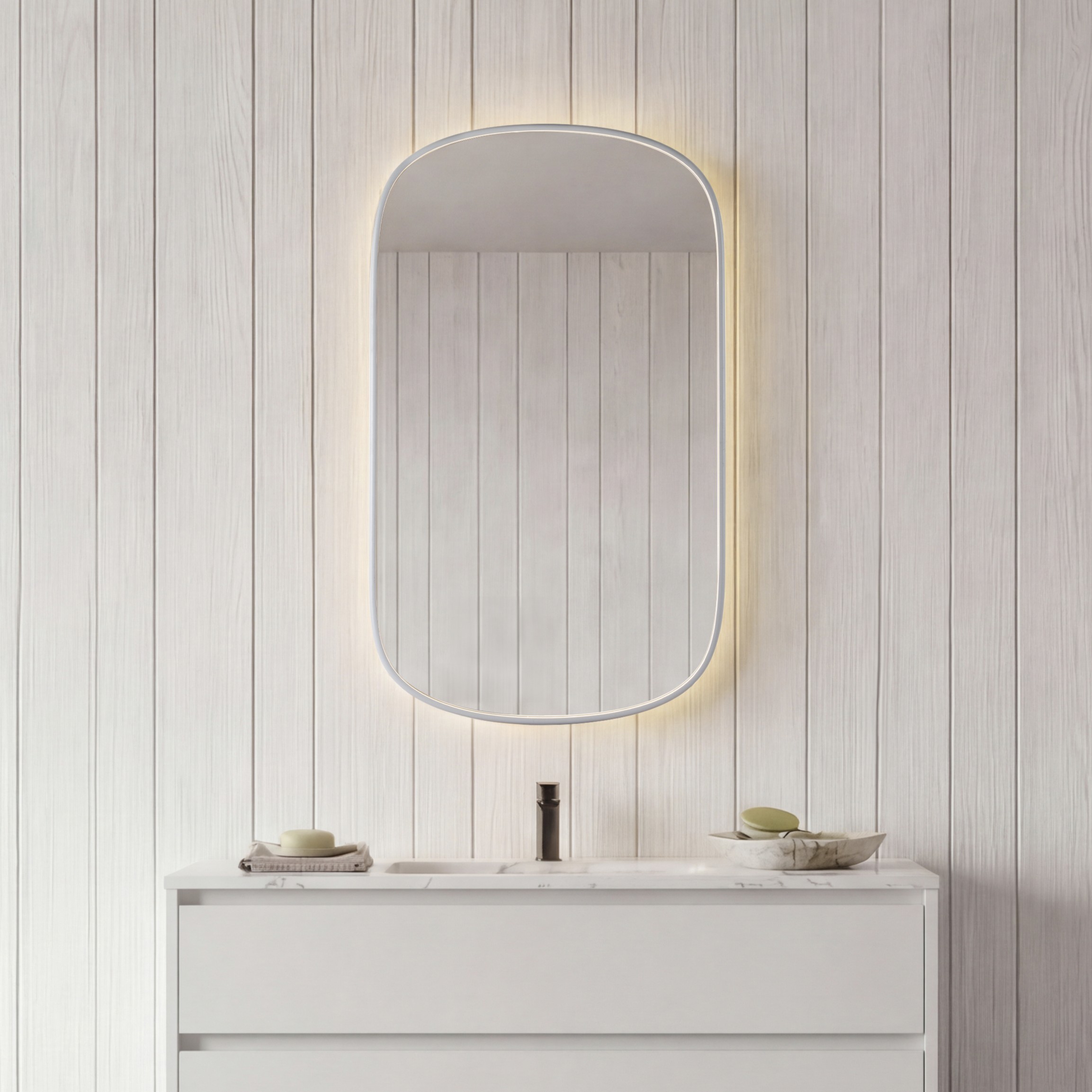 - Stimmungsvolle Hintergrundbeleuchtung für Licht und Gemütlichkeit im Badezimmer.